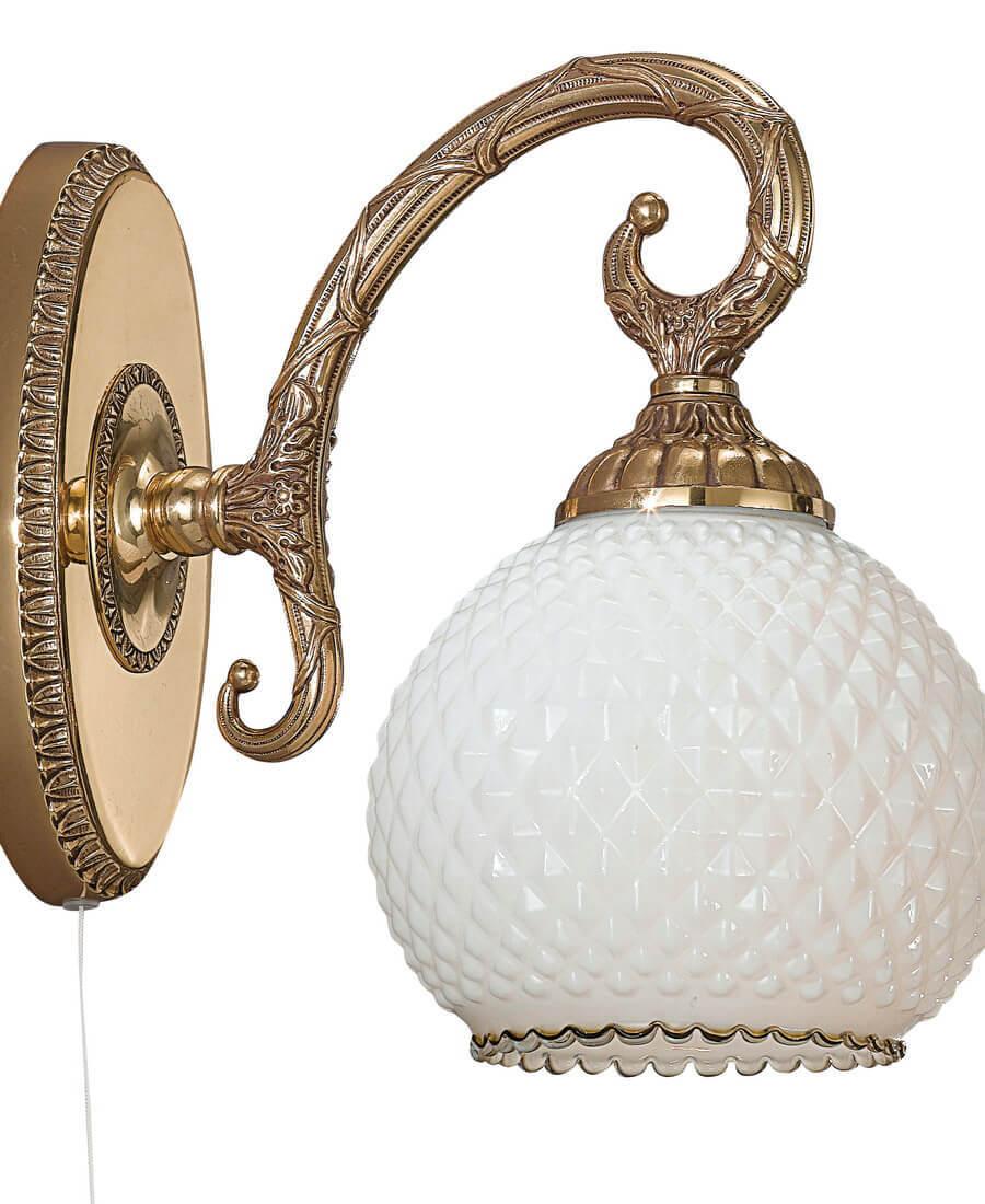 Бра Reccagni Angelo A 8500/1 от Итальянского бренда Reccagni Angelo из коллекции rosa 8500 предназначен для установки в гостиной в классиком стиле. Бра с латунной арматурой залотого цвета и белого цвета плафонами из стекла, формы круга предназначен для освещения 3 м2.