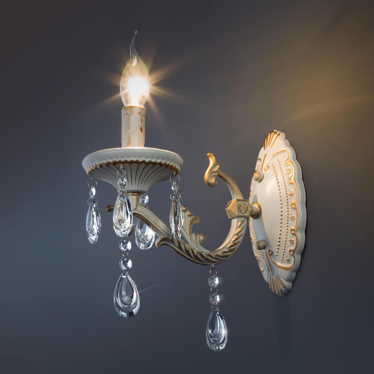 Бра Eurosvet 3585/1 белый/прозрачный хрусталь Strotskis от Российского бренда Eurosvet из коллекции Lia предназначен для установки в гостиной в классиком стиле. Бра с металлической арматурой белого цвета и плафонами из , формы предназначен для освещения 5 м2.