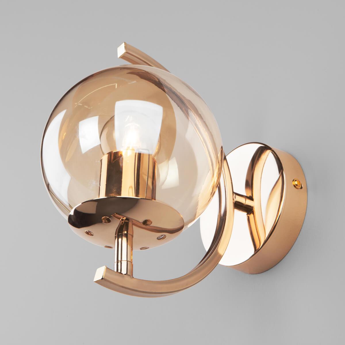 Бра Eurosvet Story 50072/1B золото от Российского бренда Eurosvet из коллекции Story предназначен для установки в кухне в хай-тек стиле. Бра с металлической арматурой залотого цвета и янтарного цвета плафонами из стекла, формы шара предназначен для освещения 4 м2.