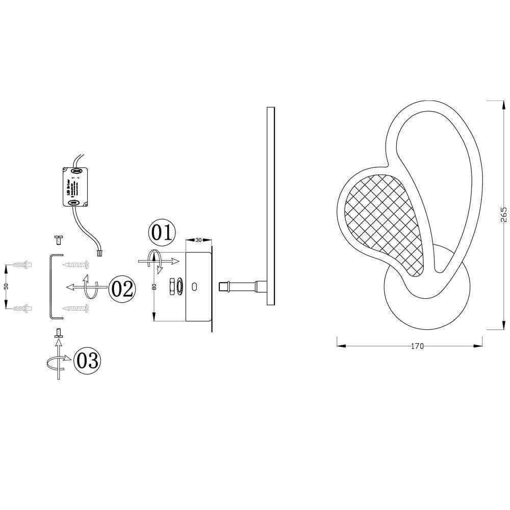 Для БРА необходима светодиодных ламп 13 W и цоколем LED. Габариты изделия: высота – 265 мм, диаметр – мм.