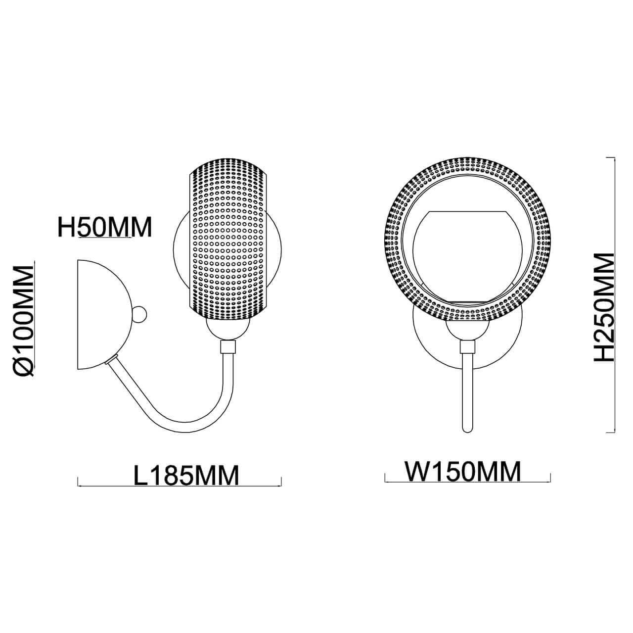 Для БРА необходима 1 светодиодная лампа 40 W и цоколем E14. Габариты изделия: высота – 250 мм, диаметр – мм.