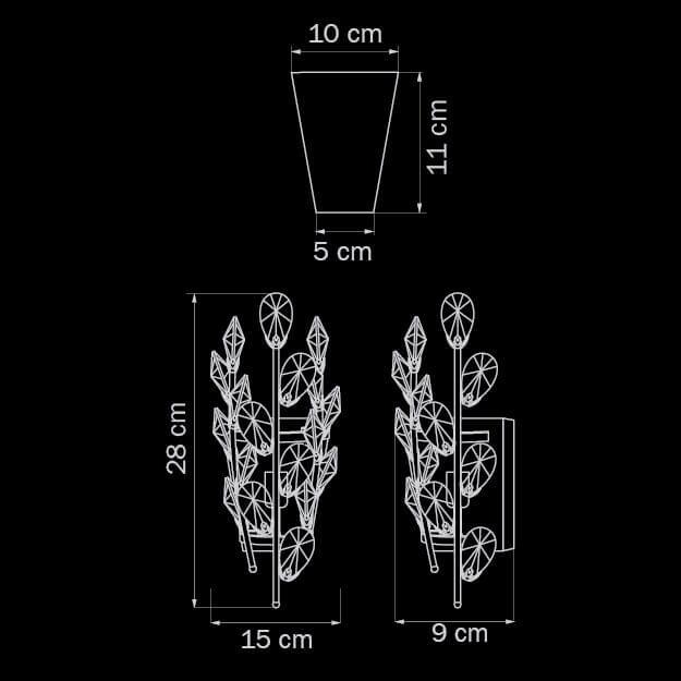 Для БРА необходима 1 галогеновая лампа 40 W и цоколем G9. Габариты изделия: высота – 280 мм, диаметр – мм.