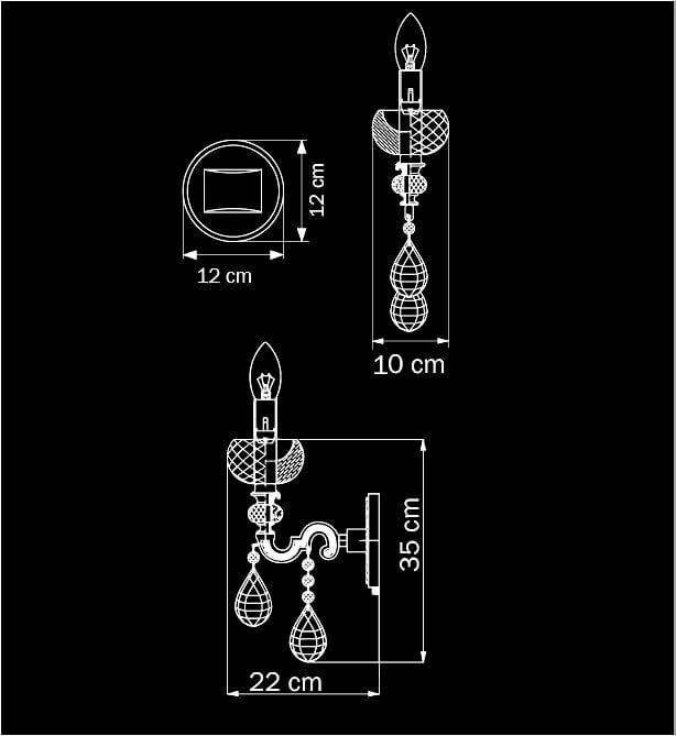 Для БРА необходима 1 лампа накаливания 60 W и цоколем E14. Габариты изделия: высота – 350 мм, диаметр – мм.