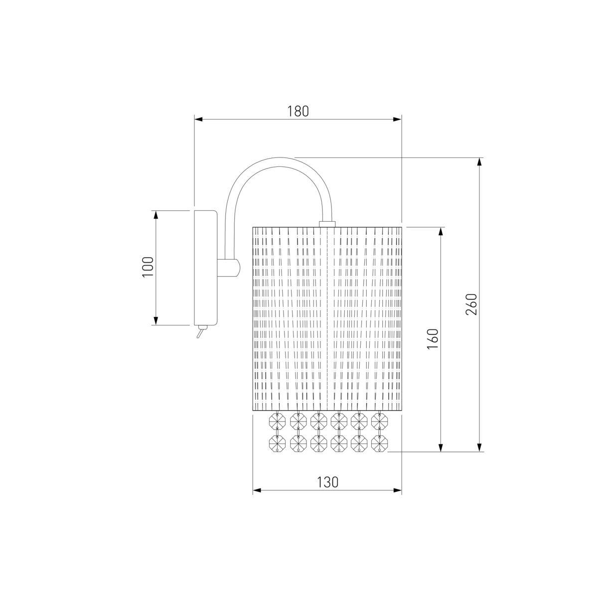 Для БРА необходима 1 лампа накаливания 60 W и цоколем E14. Габариты изделия: высота – 240 мм, диаметр – мм.