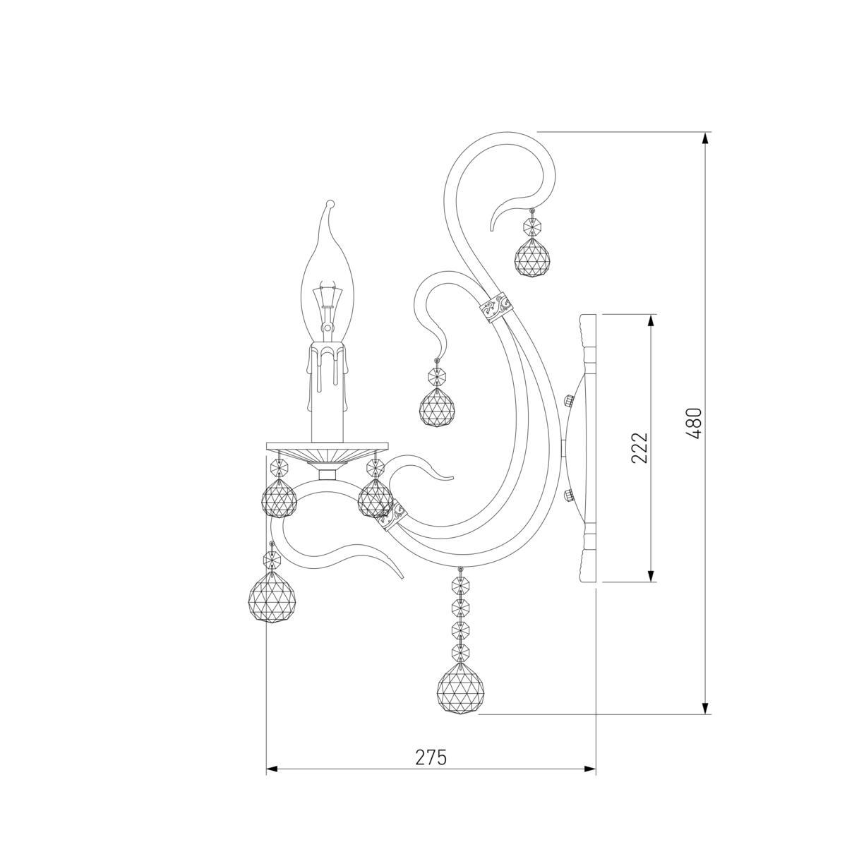 Для БРА необходима 1 лампа накаливания 40 W и цоколем E14. Габариты изделия: высота – 480 мм, диаметр – мм.