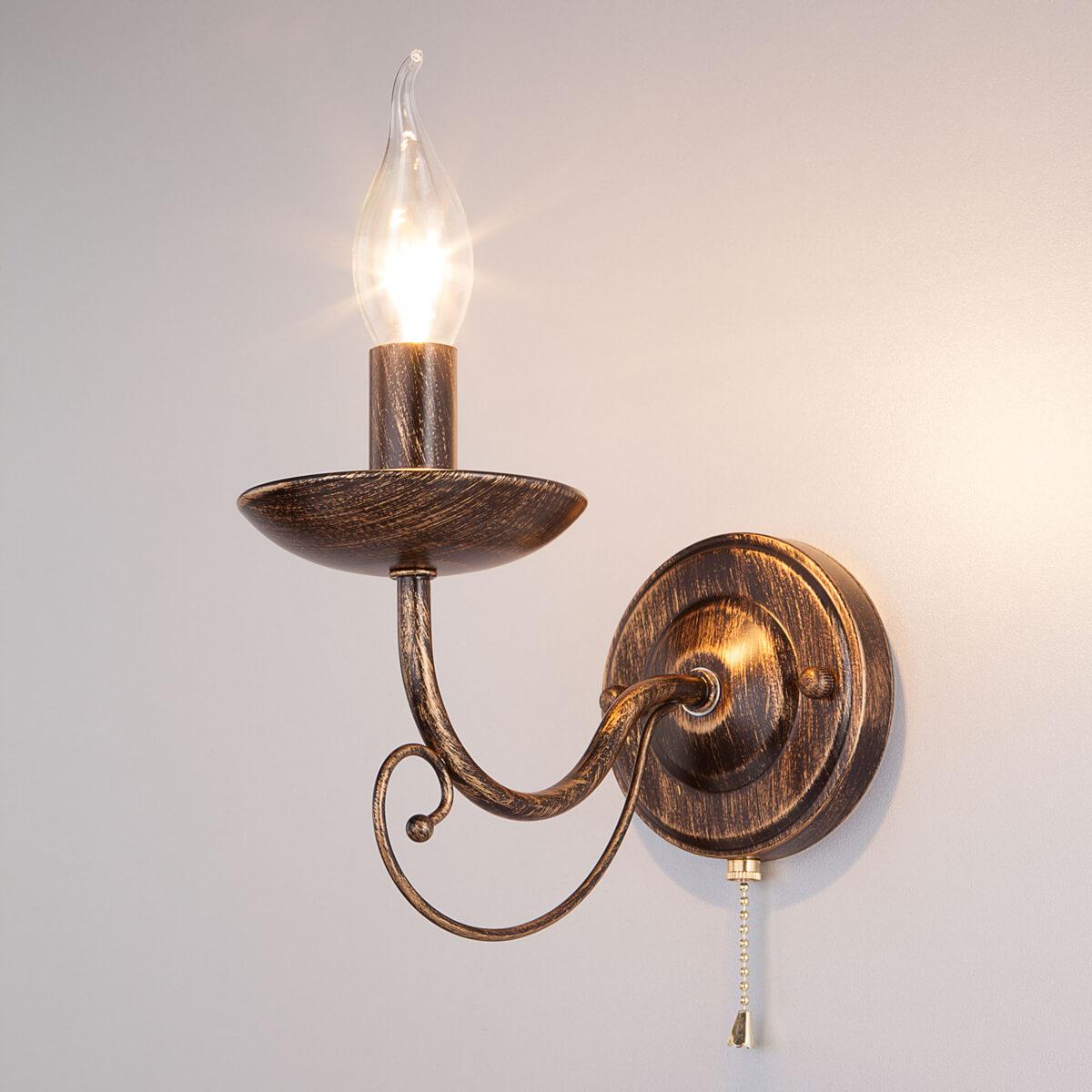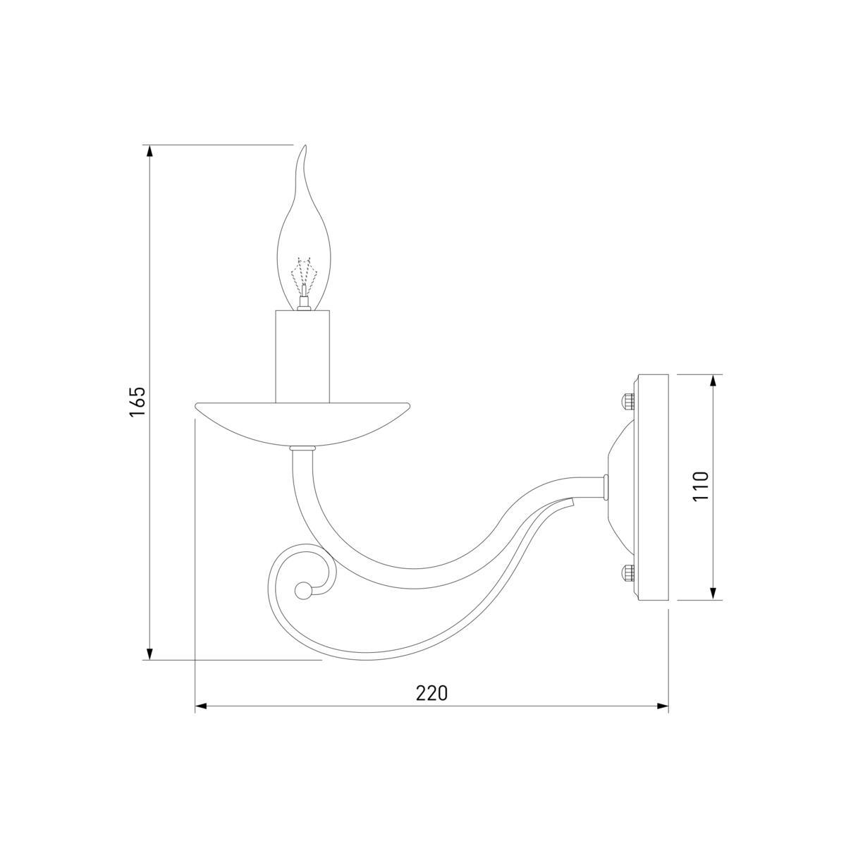 Для БРА необходима 1 лампа накаливания 40 W и цоколем E14. Габариты изделия: высота – 165 мм, диаметр – мм.