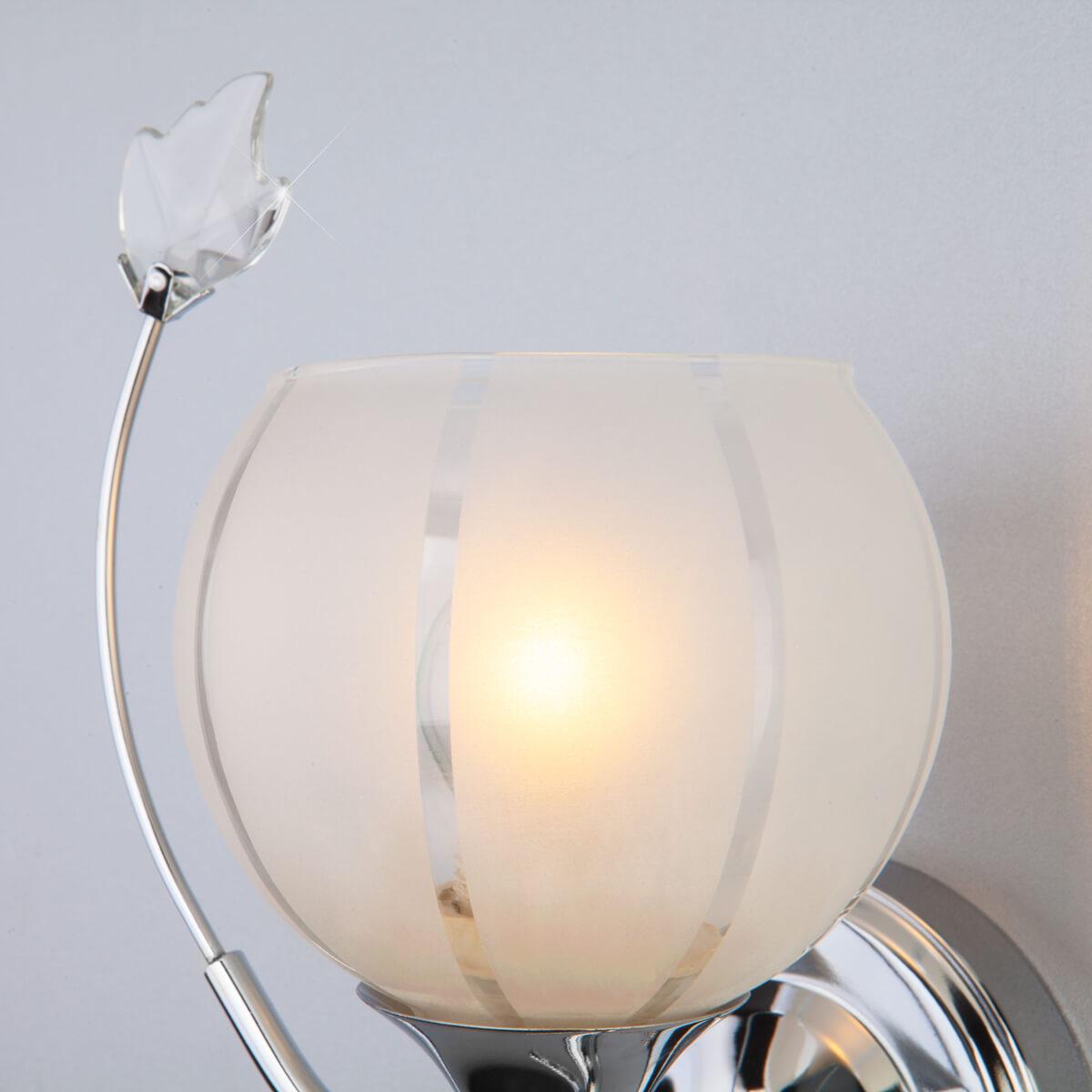 Бра Eurosvet 3457/1 хром/белый от Российского бренда Eurosvet из коллекции 3353, 3457 Хром предназначен для установки в гостиной в современном стиле. Бра с металлической арматурой цвет хрома и белого цвета плафонами из стекла, формы круга предназначен для освещения 5 м2.