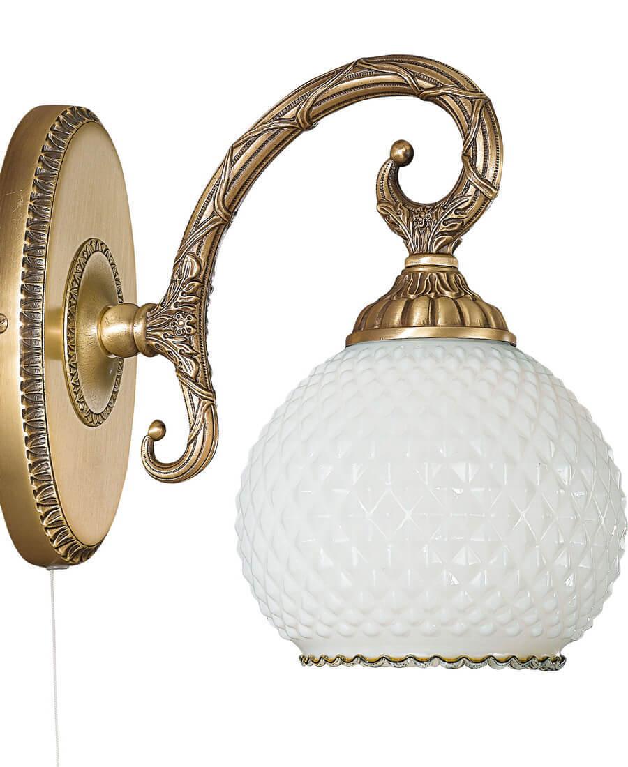 Бра Reccagni Angelo A.8400/1 от Итальянского бренда из коллекции rosa 8400 предназначен для установки в спальни в классиком стиле. Бра с латунной арматурой цвета античной бронзы и белого цвета плафонами из стекла, формы предназначен для освещения 3 м2.