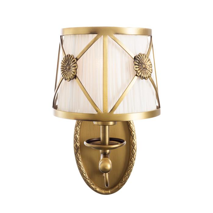 Бра Arte Lamp Chic A2806AP-1SR от Китайского бренда из коллекции Chic предназначен для установки в спальни в стиле кантри. Бра с металлической арматурой желтого цвета и белого цвета плафонами из ткани, формы предназначен для освещения 2,2 м2.