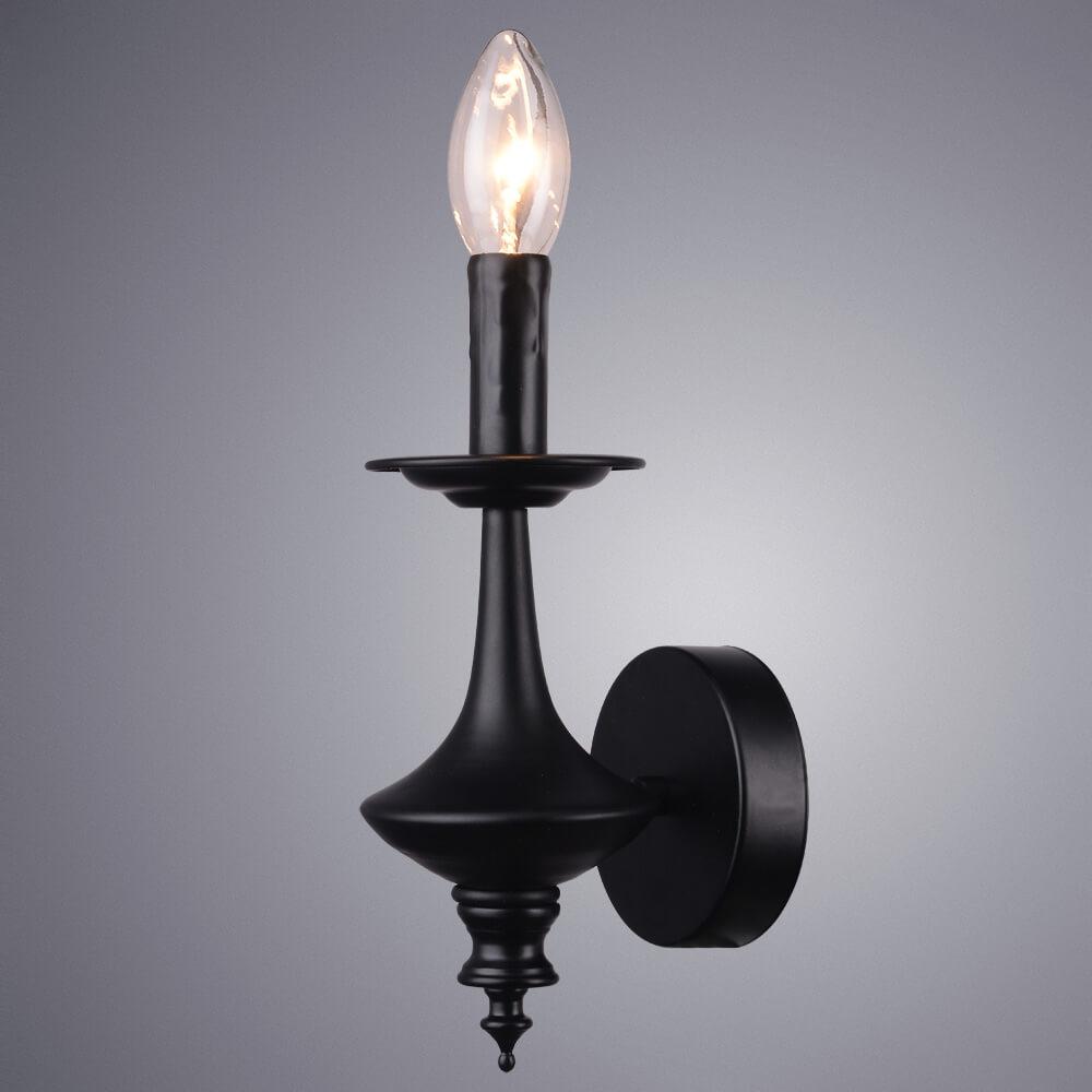 Для БРА необходима 1 лампа накаливания 40 W и цоколем E14. Габариты изделия: высота – 250 мм, диаметр – мм.