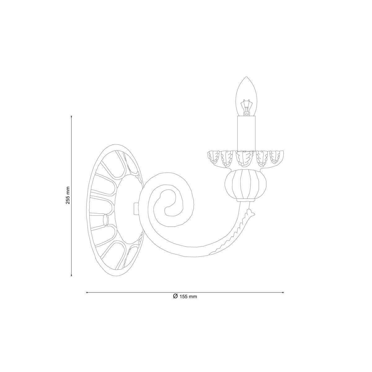 Для БРА необходима 1 лампа накаливания 60 W и цоколем E14. Габариты изделия: высота – 340 мм, диаметр – мм.