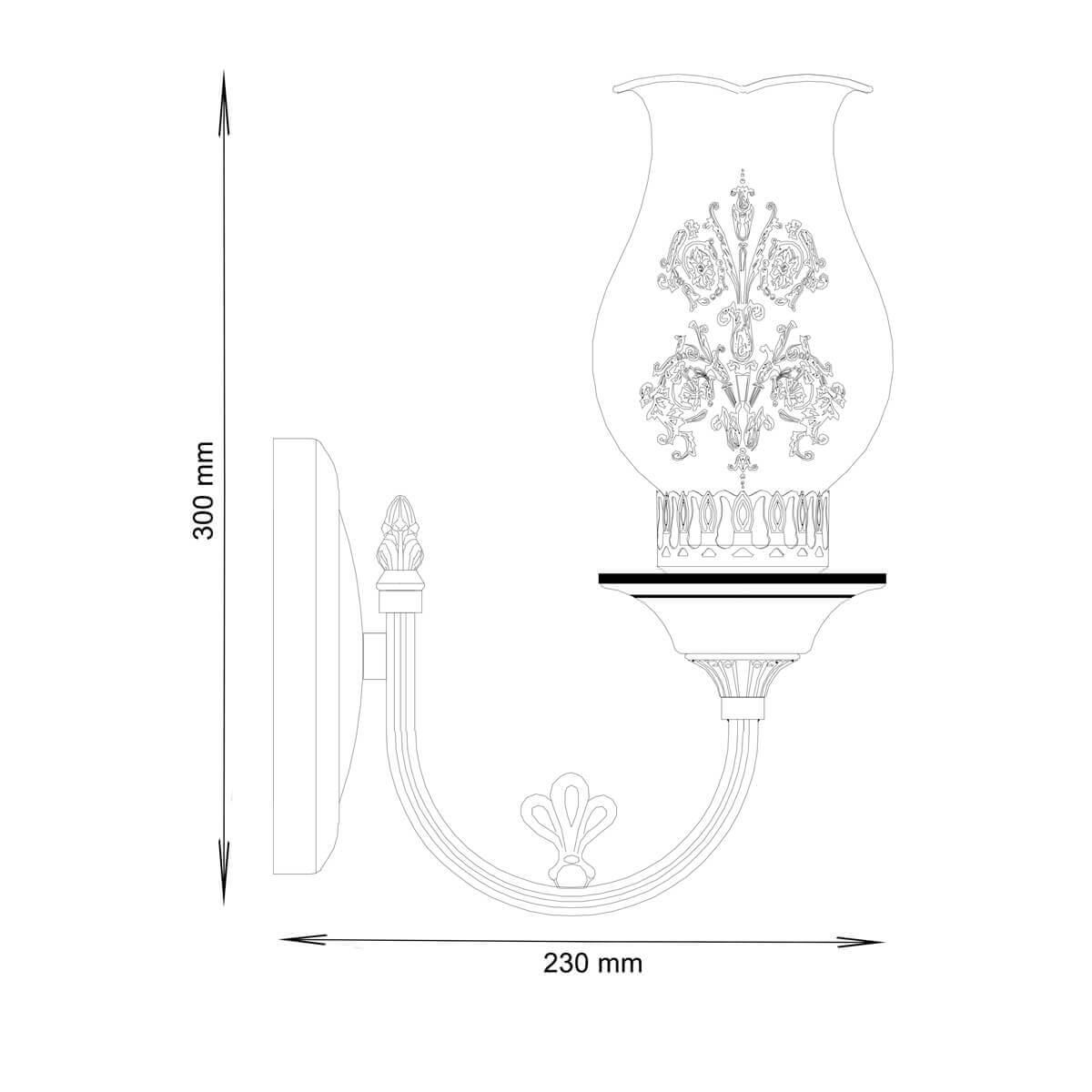 Для БРА необходима 1 лампа накаливания 60 W и цоколем E14. Габариты изделия: высота – 110 мм, диаметр – мм.