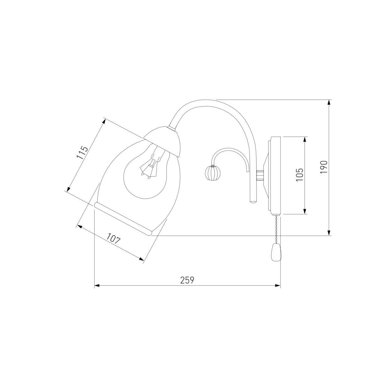 Для БРА необходима 1 лампа накаливания 60 W и цоколем E27. Габариты изделия: высота – 170 мм, диаметр – мм.