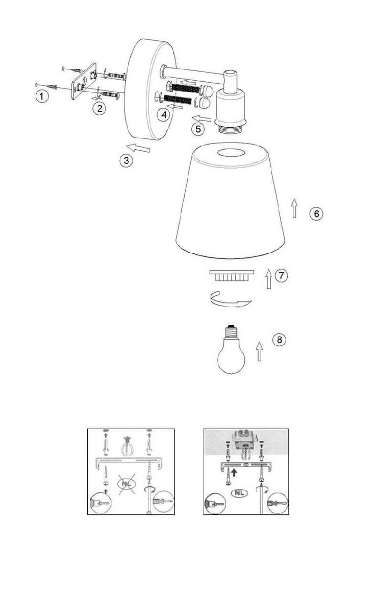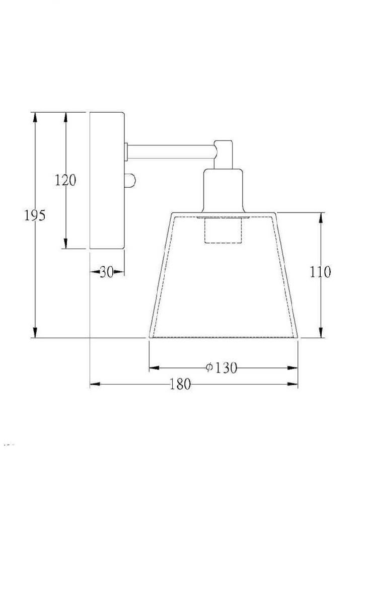 Для БРА необходима 1 лампа накаливания 40 W и цоколем E14. Габариты изделия: высота – 195 мм, диаметр – мм.
