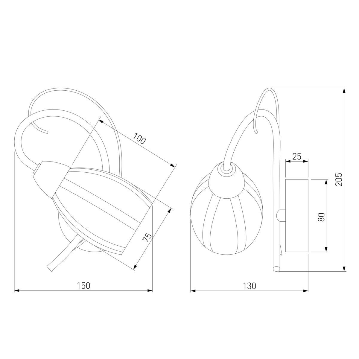 Для БРА необходима 1 лампа накаливания 40 W и цоколем E14. Габариты изделия: высота – 200 мм, диаметр – мм.