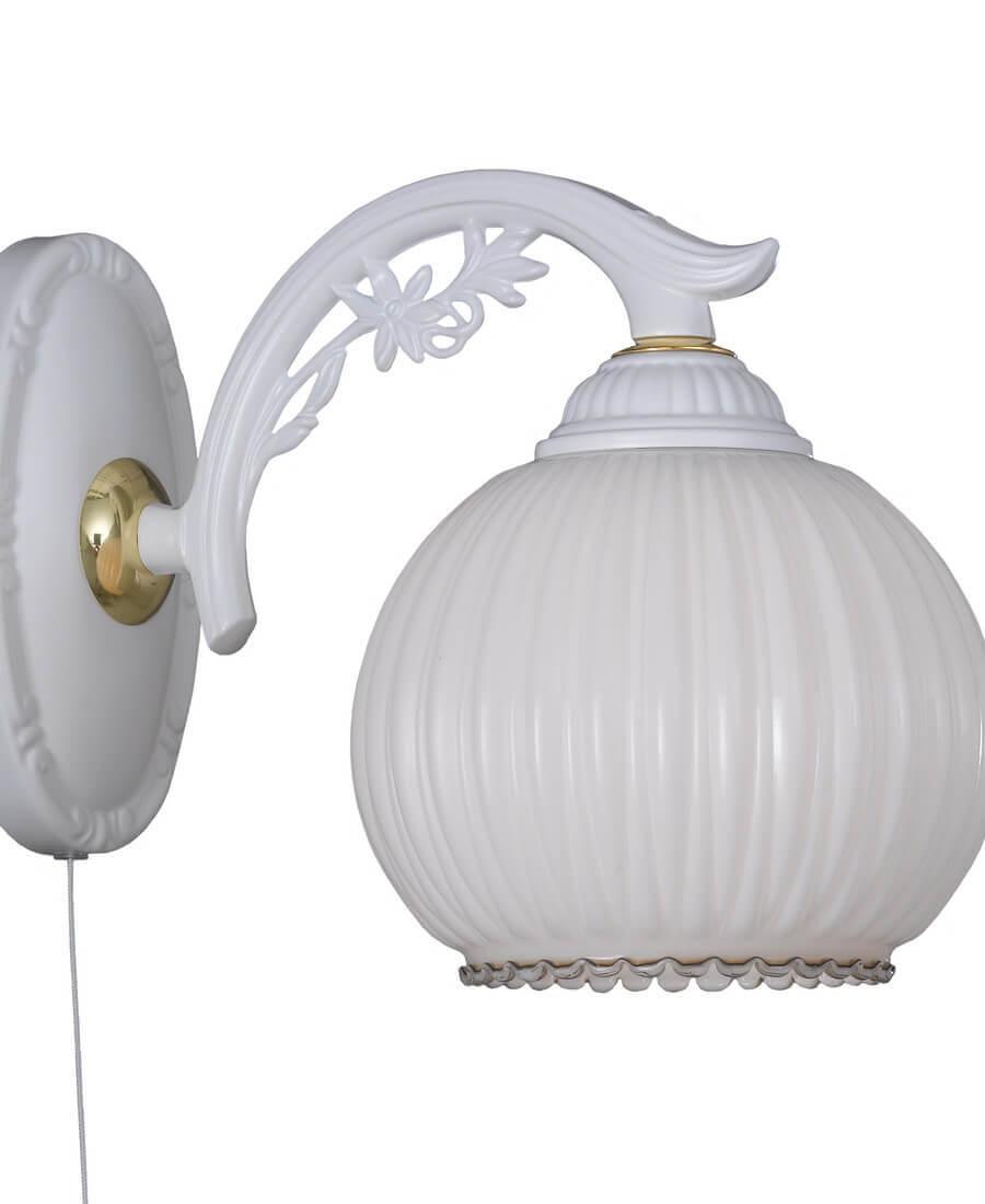 Бра Reccagni Angelo A.9600/1 от Итальянского бренда из коллекции 9600 предназначен для установки в спальни в классиком стиле. Бра с латунной арматурой белого цвета и белого цвета плафонами из стекла, формы предназначен для освещения 3 м2.