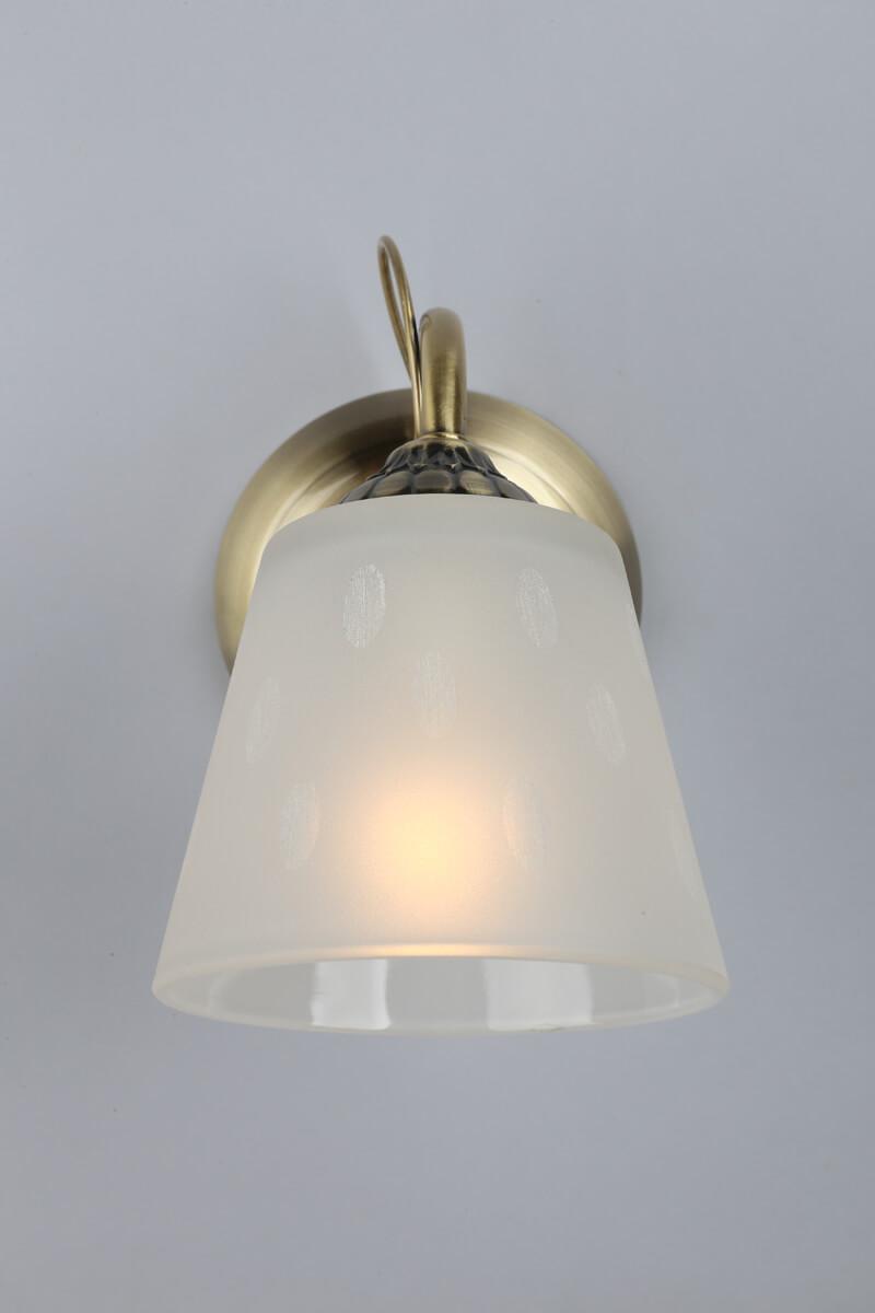 Бра Omnilux Larone OML-54601-01 от Китайского бренда Omnilux из коллекции Larone предназначен для установки в спальни в стиле модерн. Бра с металлической арматурой бронзового цвета и белого цвета плафонами из стекла, формы конуса предназначен для освещения 3,3 м2.