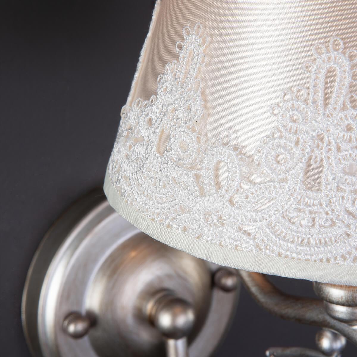 Бра Eurosvet 60069/1 серебро от Китайского бренда Eurosvet из коллекции Incanto предназначен для установки в спальни в классиком стиле. Бра с металлической арматурой серебрянного цвета и бежевого цвета плафонами из ткани, формы конуса предназначен для освещения м2.