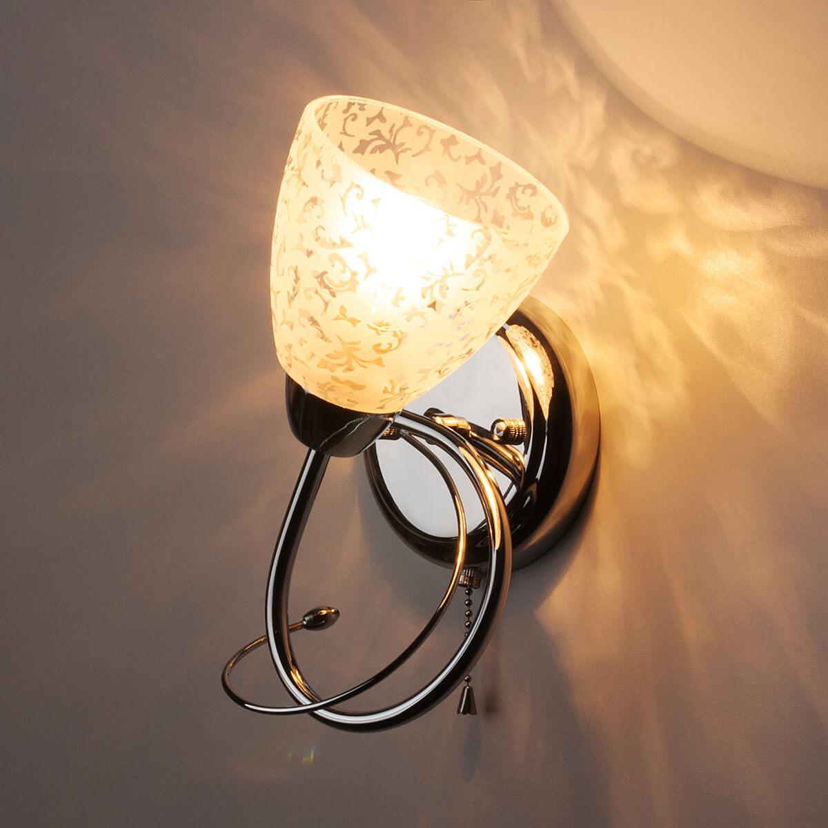 Бра Eurosvet 30130/1 хром от Китайского бренда Eurosvet из коллекции Natalie предназначен для установки в спальни в современном стиле. Бра с металлической арматурой цвет хрома и белого цвета плафонами из стекла, формы конуса предназначен для освещения м2.