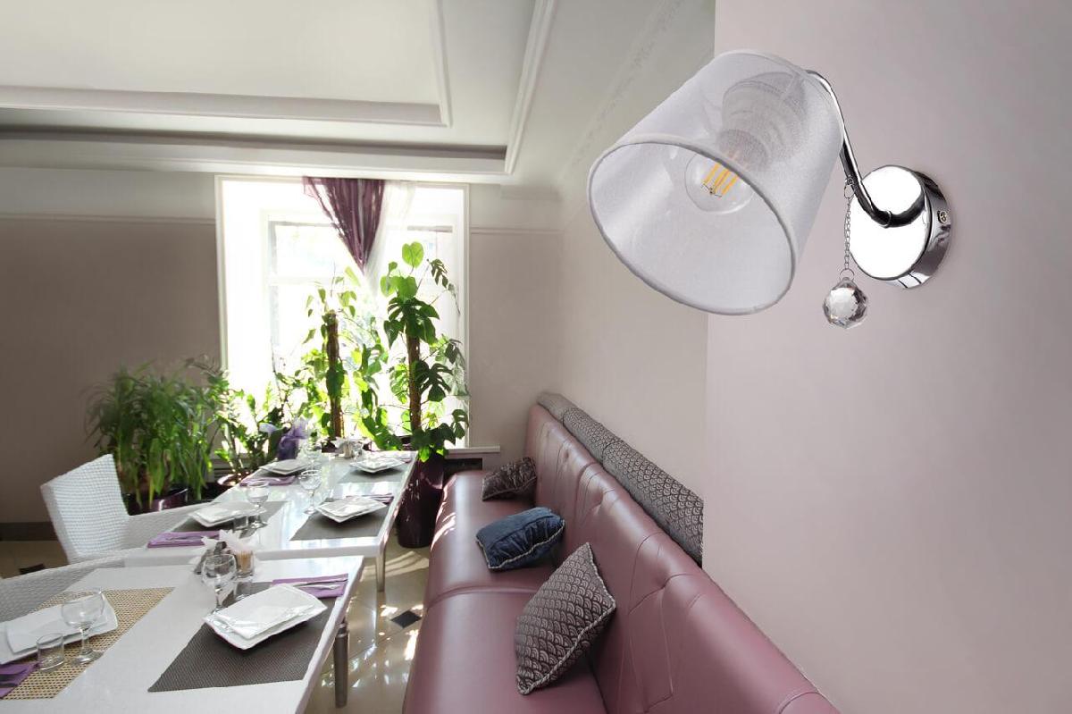Для БРА необходима 1 лампа накаливания 60 W и цоколем E27. Габариты изделия: высота – 140 мм, диаметр – мм.