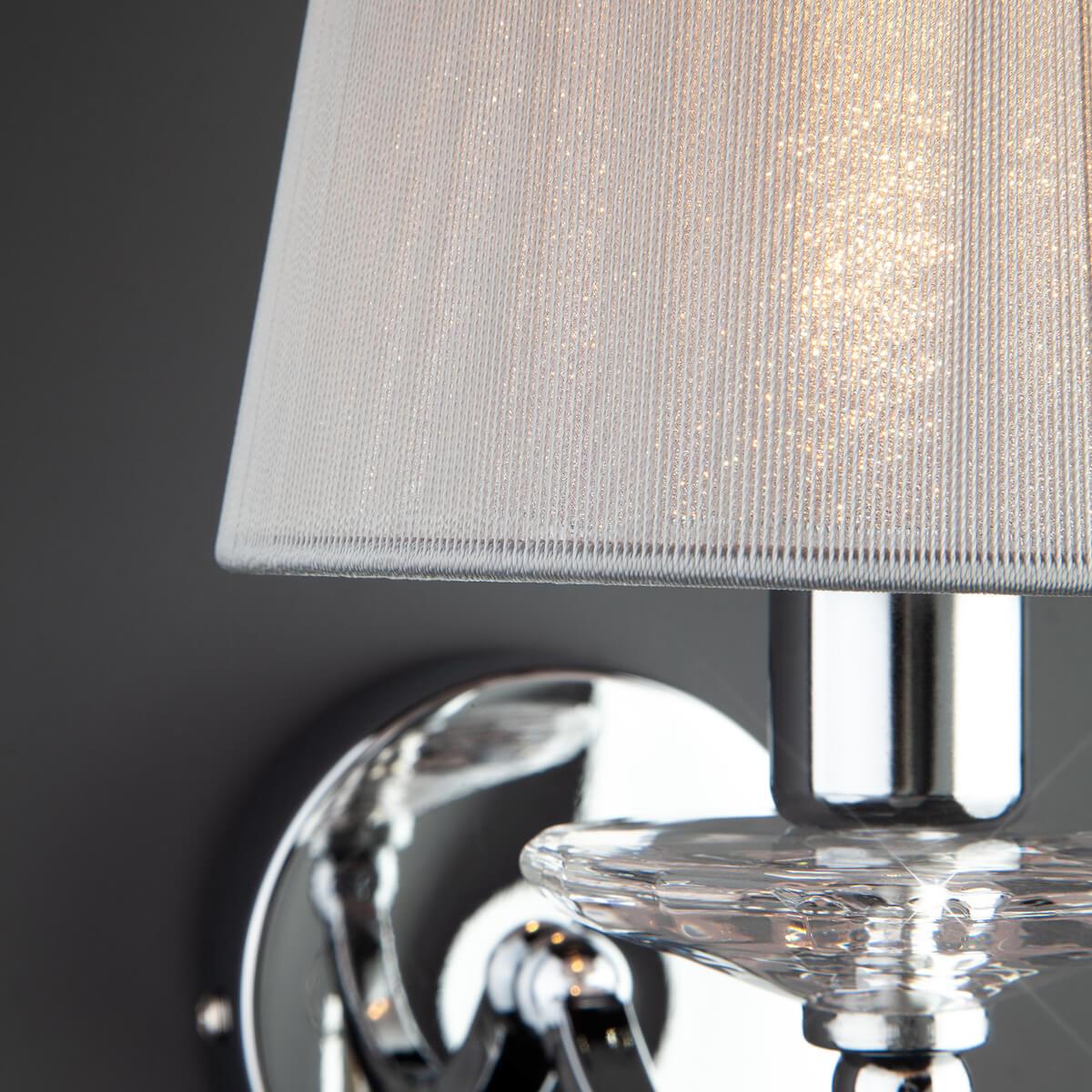 Бра Eurosvet 60079/1 хром от Китайского бренда Eurosvet из коллекции Valery предназначен для установки в спальни в неоклассическом стиле. Бра с металлической арматурой цвет хрома и серого цвета плафонами из ткани, формы конуса предназначен для освещения 2 м2.