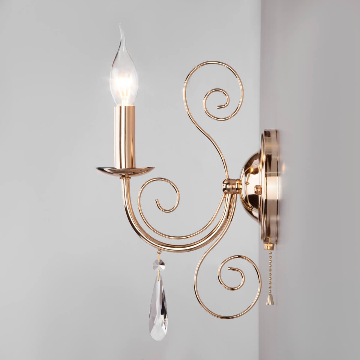 Бра Eurosvet 10094/1 золото/прозрачный хрусталь Strotskis от Российского бренда Eurosvet из коллекции Wispa предназначен для установки в гостиной в классиком стиле. Бра с металлической арматурой залотого цвета и плафонами из , формы предназначен для освещения 4 м2.