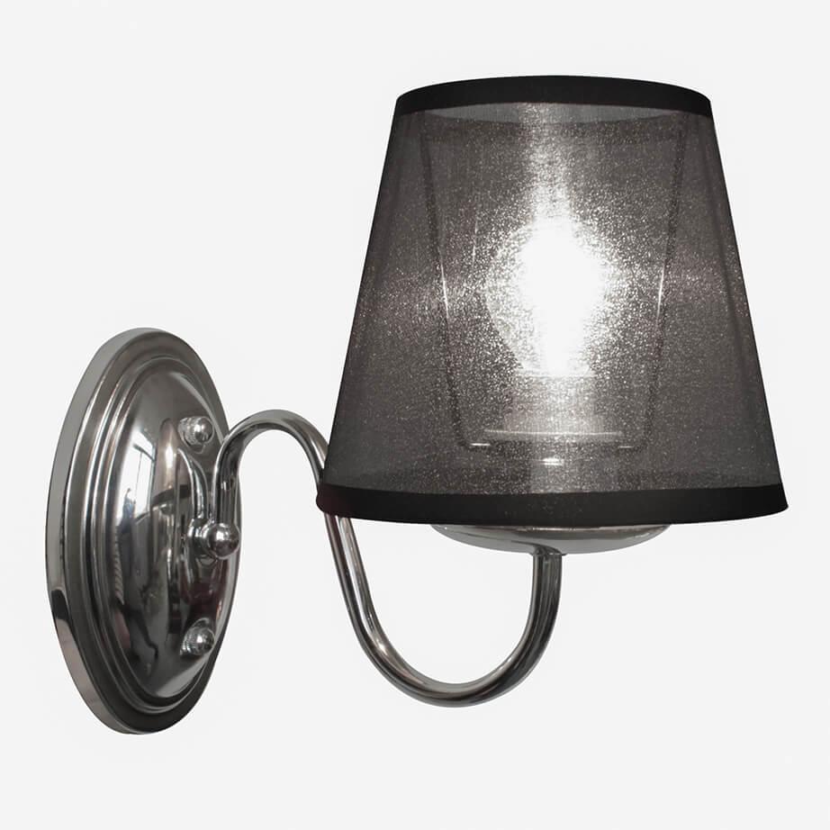 Бра Zumaline Clamart P15091-1W от Польского бренда из коллекции Clamart предназначен для установки в гостиной в стиле модерн. Бра с металлической арматурой цвет хрома и черного цвета плафонами из органзы, формы предназначен для освещения м2.