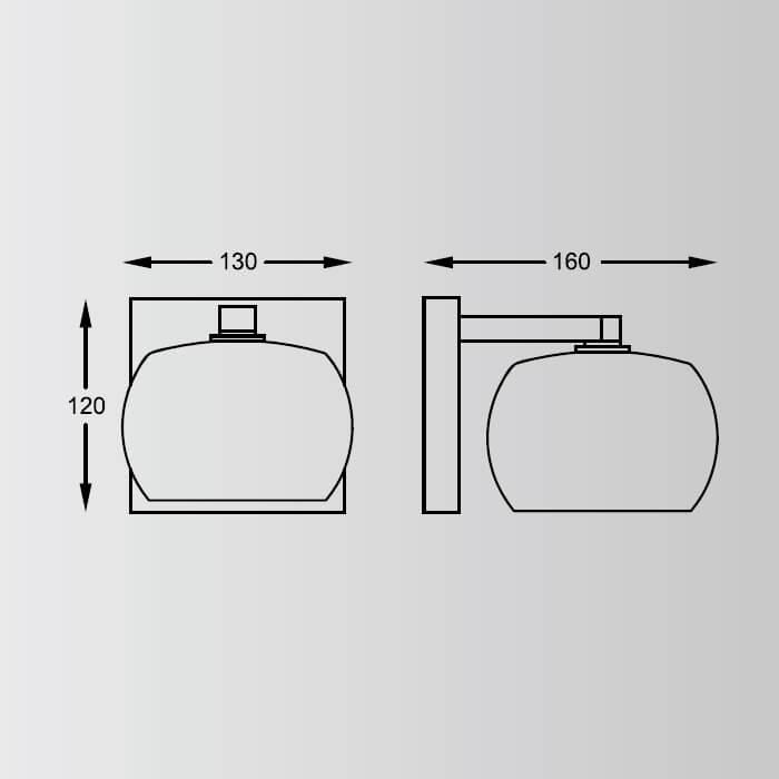 Для БРА необходима 1 галогеновая лампа 42 W и цоколем G9. Габариты изделия: высота – 120 мм, диаметр – мм.