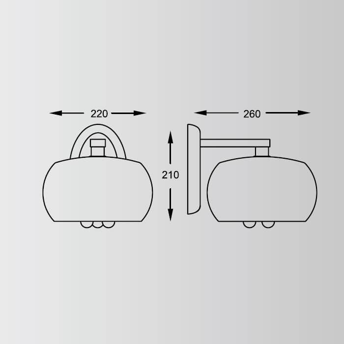 Для БРА необходима 1 галогеновая лампа 42 W и цоколем G9. Габариты изделия: высота – 210 мм, диаметр – мм.