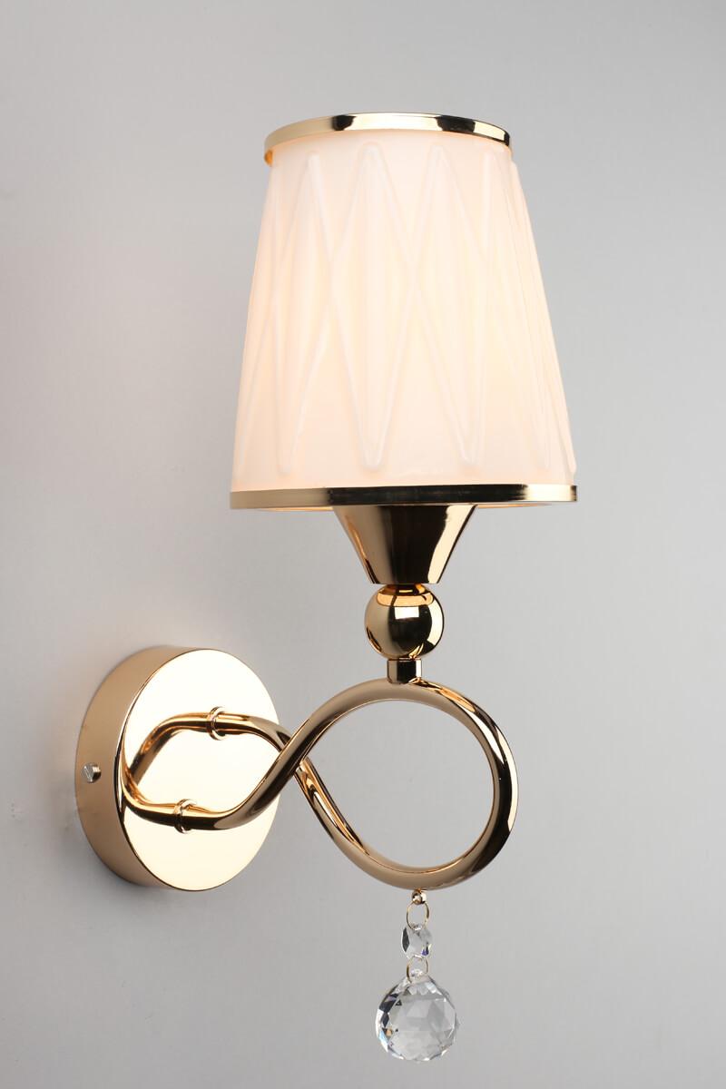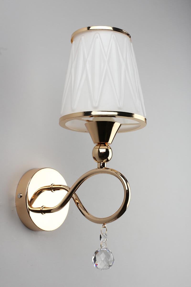 Бра Omnilux Farneta OML-56501-01 от бренда Omnilux из коллекции предназначен для установки в спальни в классиком стиле. Бра с металлической арматурой залотого цвета и белого цвета плафонами из стекла, формы конуса предназначен для освещения 2 м2.
