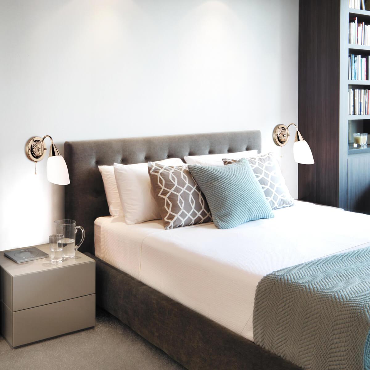 Бра Eurosvet 30149/1 золото от Китайского бренда Eurosvet из коллекции Ellene предназначен для установки в спальни в классиком стиле. Бра с металлической арматурой залотого цвета и белого цвета плафонами из стекла, формы овала предназначен для освещения м2.