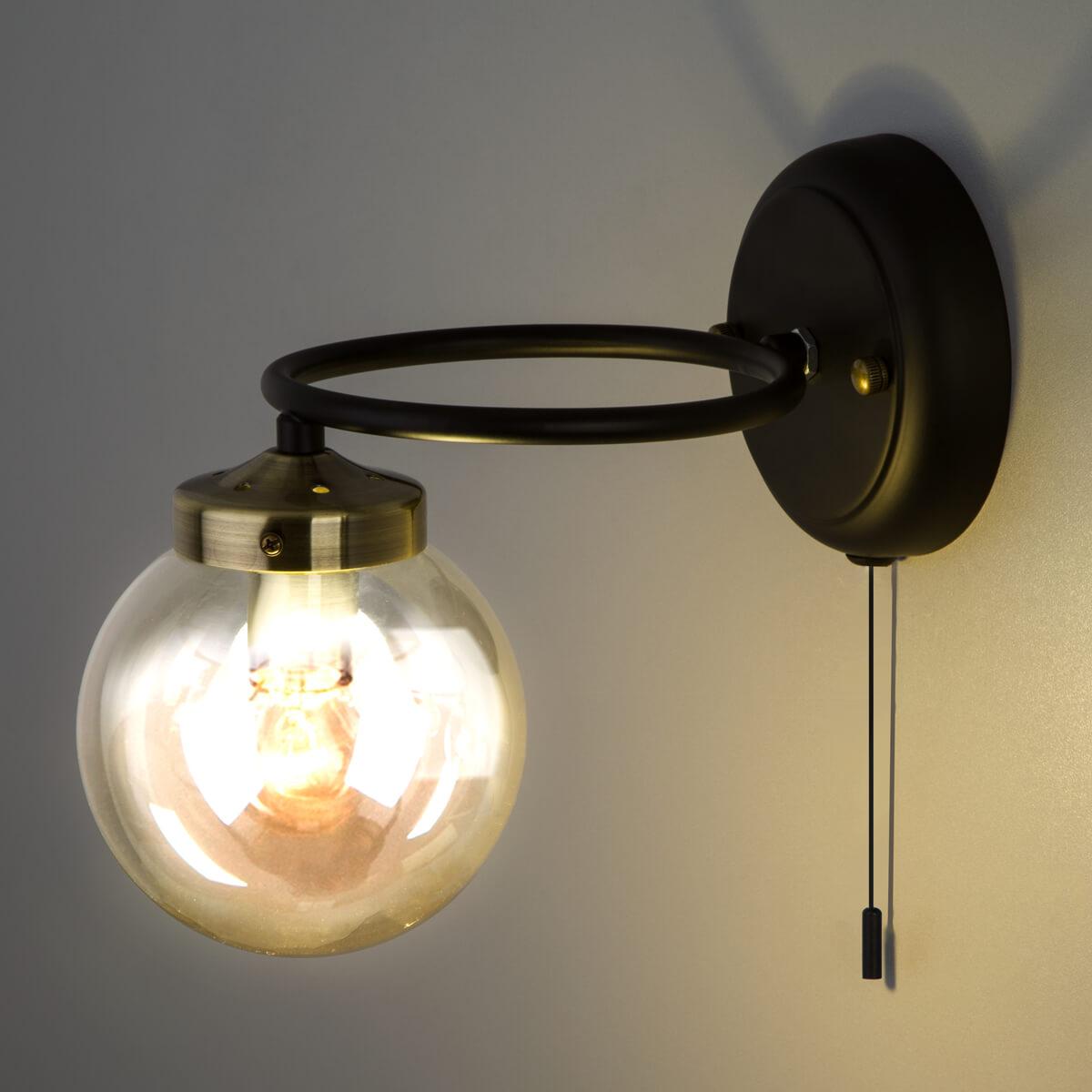 Бра Eurosvet 70104/1 черный от бренда Eurosvet из коллекции Link предназначен для установки в спальни в современном стиле. Бра с металлической арматурой черного цвета и янтарного цвета плафонами из стекла, формы круга предназначен для освещения м2.