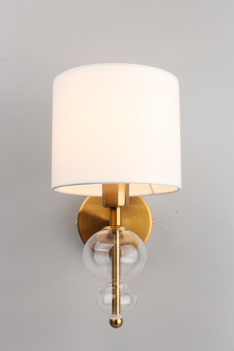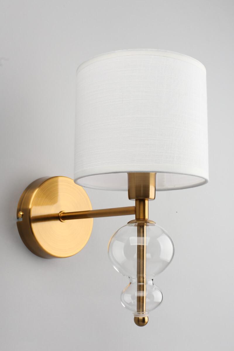 Бра Omnilux Amelia OML-56701-01 от Китайского бренда Omnilux из коллекции Amelia предназначен для установки в спальни в стиле модерн. Бра с металлической арматурой залотого цвета и белого цвета плафонами из ткани, формы цилиндра предназначен для освещения 2 м2.