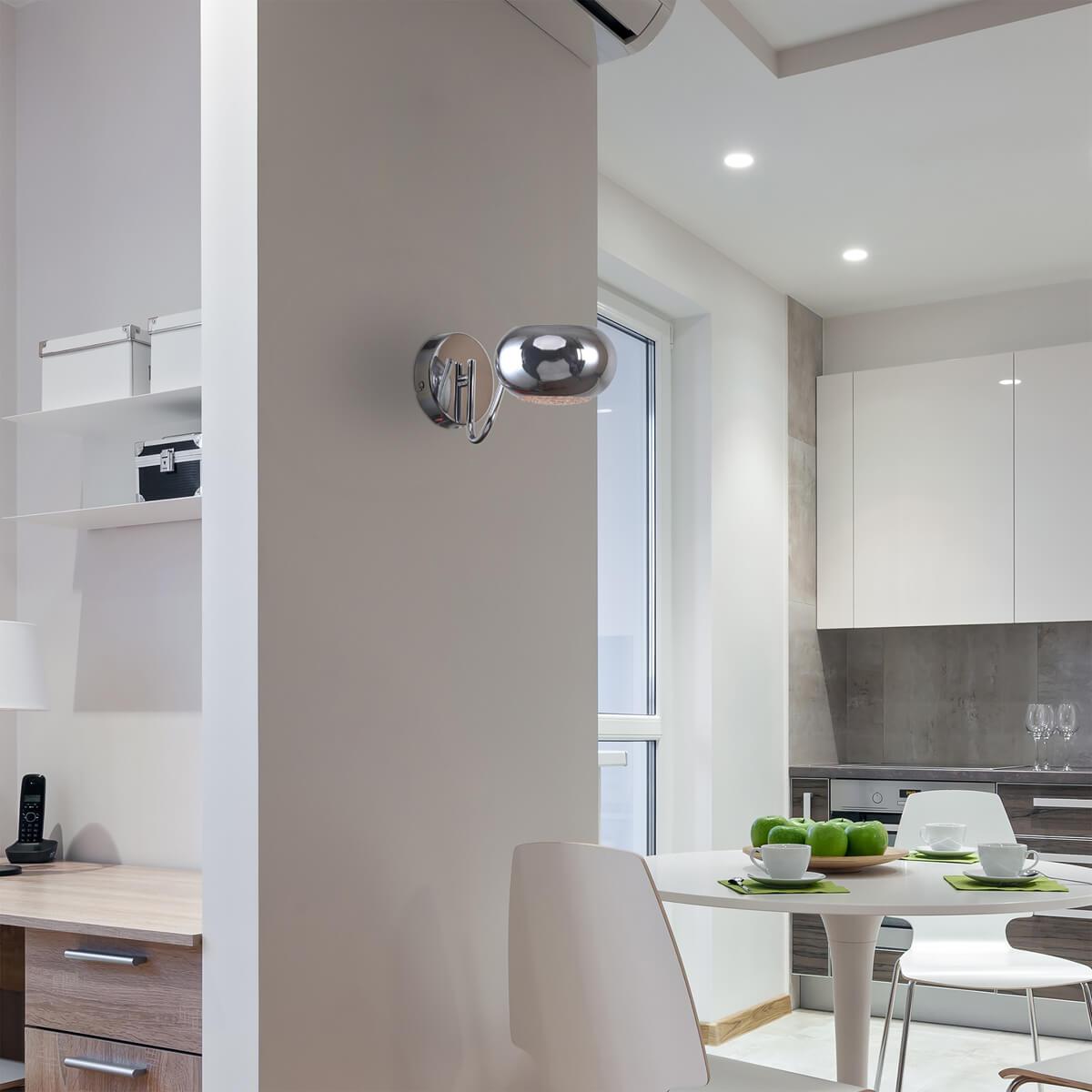 Бра Rivoli Romi 3038-401 Б0044499 от Итальянского бренда Rivoli из коллекции Romi предназначен для установки в спальни в современном стиле. Бра с металлической арматурой цвет хрома и цвет хрома плафонами из металла, формы овала предназначен для освещения 3 м2.