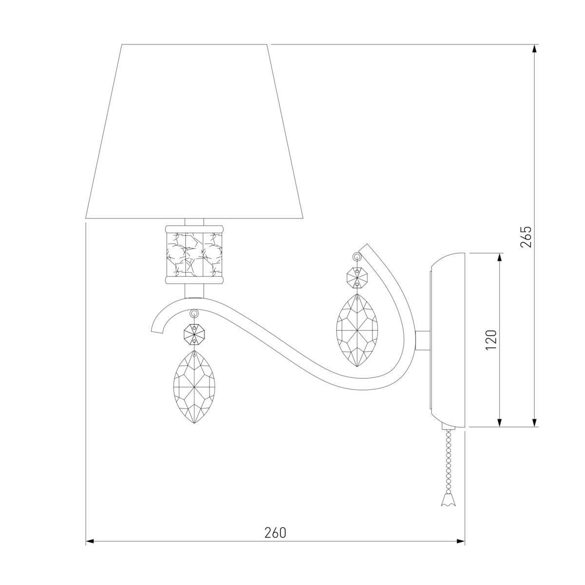 Для БРА необходима 1 лампа накаливания 40 W и цоколем E14. Габариты изделия: высота – 265 мм, диаметр – мм.
