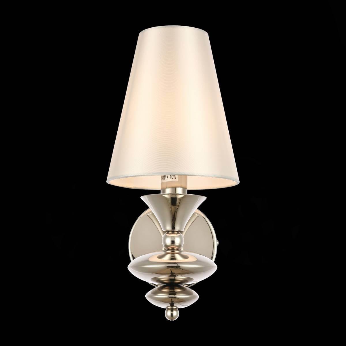 Бра Evoluce Rionfo SL1137.101.01 от Китайского бренда Evoluce из коллекции Rionfo предназначен для установки в спальни в классиком стиле. Бра с металлической арматурой цвета никель и белого цвета плафонами из ткани, формы конуса предназначен для освещения 2 м2.