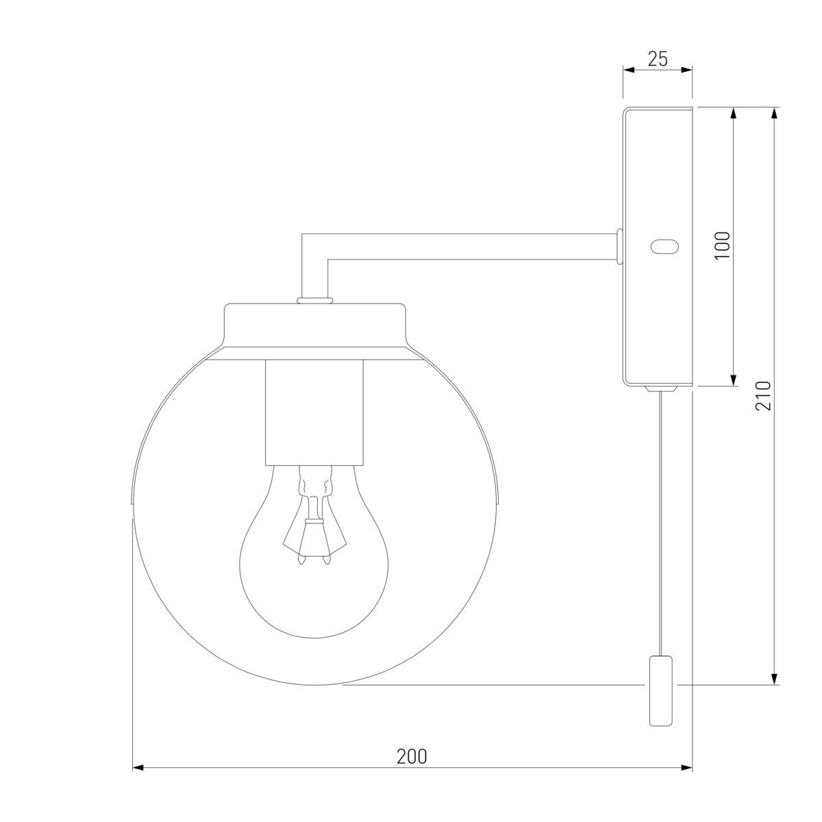 Для БРА необходима 1 лампа накаливания 60 W и цоколем E27. Габариты изделия: высота – 210 мм, диаметр – мм.