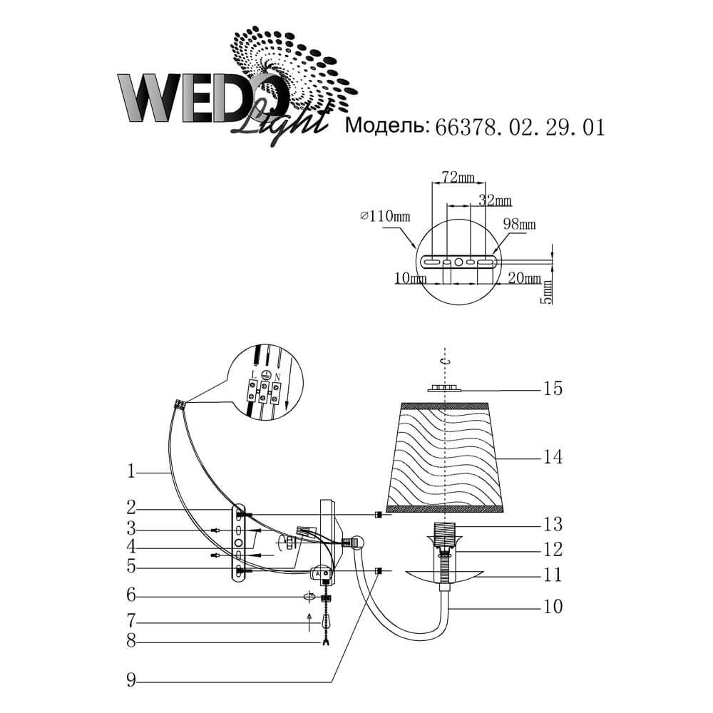 Для БРА необходима 1 лампа накаливания 60 W и цоколем E14. Габариты изделия: высота – 260 мм, диаметр – мм.