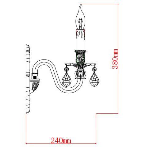 Для БРА необходима 1 светодиодная лампа 40 W и цоколем E14. Габариты изделия: высота – 380 мм, диаметр – мм.