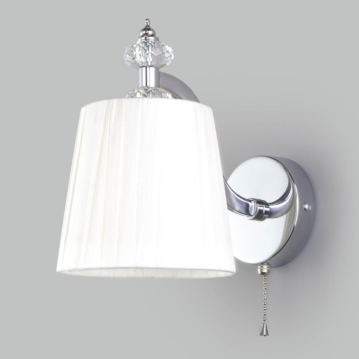 Бра Eurosvet Diva 60122/1 хром от Китайского бренда Eurosvet из коллекции Diva предназначен для установки в спальни в классиком стиле. Бра с металлической арматурой цвет хрома и белого цвета плафонами из ткани, формы конуса предназначен для освещения 2 м2.