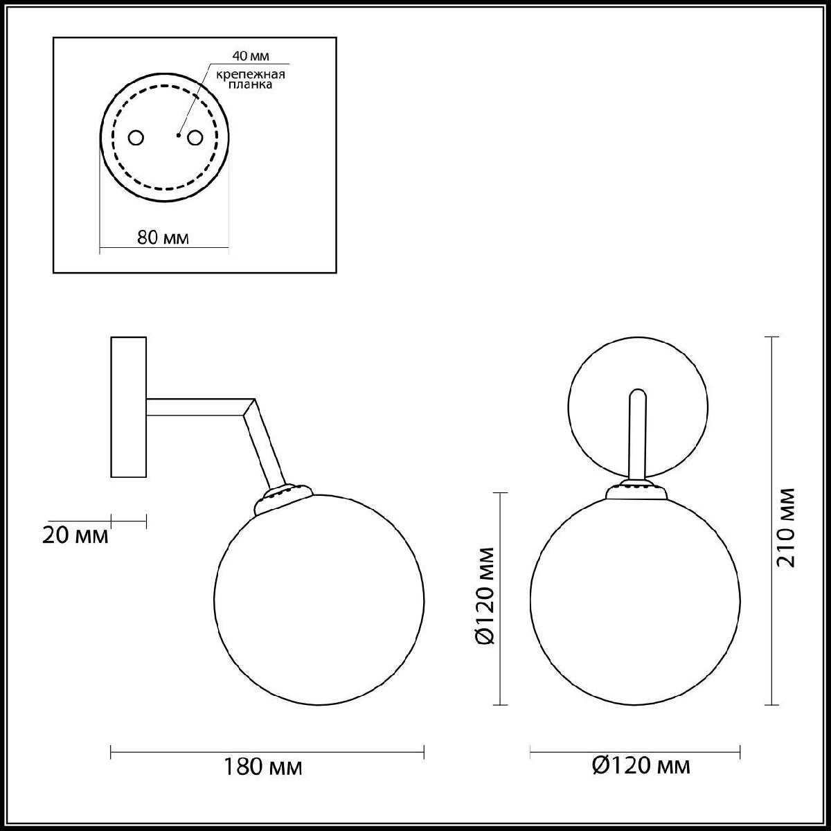 Для БРА необходима 1 галогеновая лампа 40 W и цоколем G9. Габариты изделия: высота – 210 мм, диаметр – мм.
