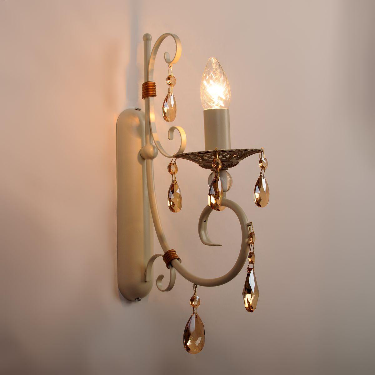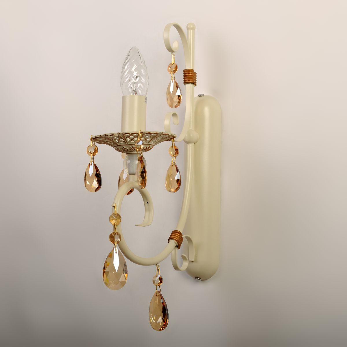 Для БРА необходима 1 лампа накаливания 40 W и цоколем E14. Габариты изделия: высота – 230 мм, диаметр – мм.