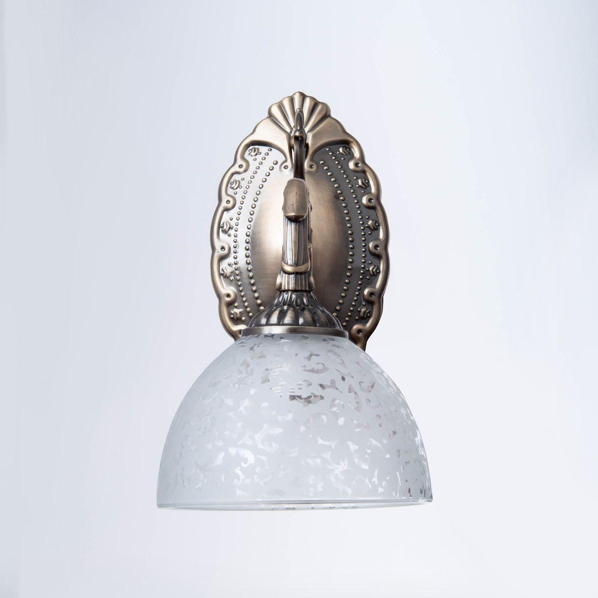 Для БРА необходима 1 лампа накаливания 40 W и цоколем E14. Габариты изделия: высота – 250 мм, диаметр – мм.