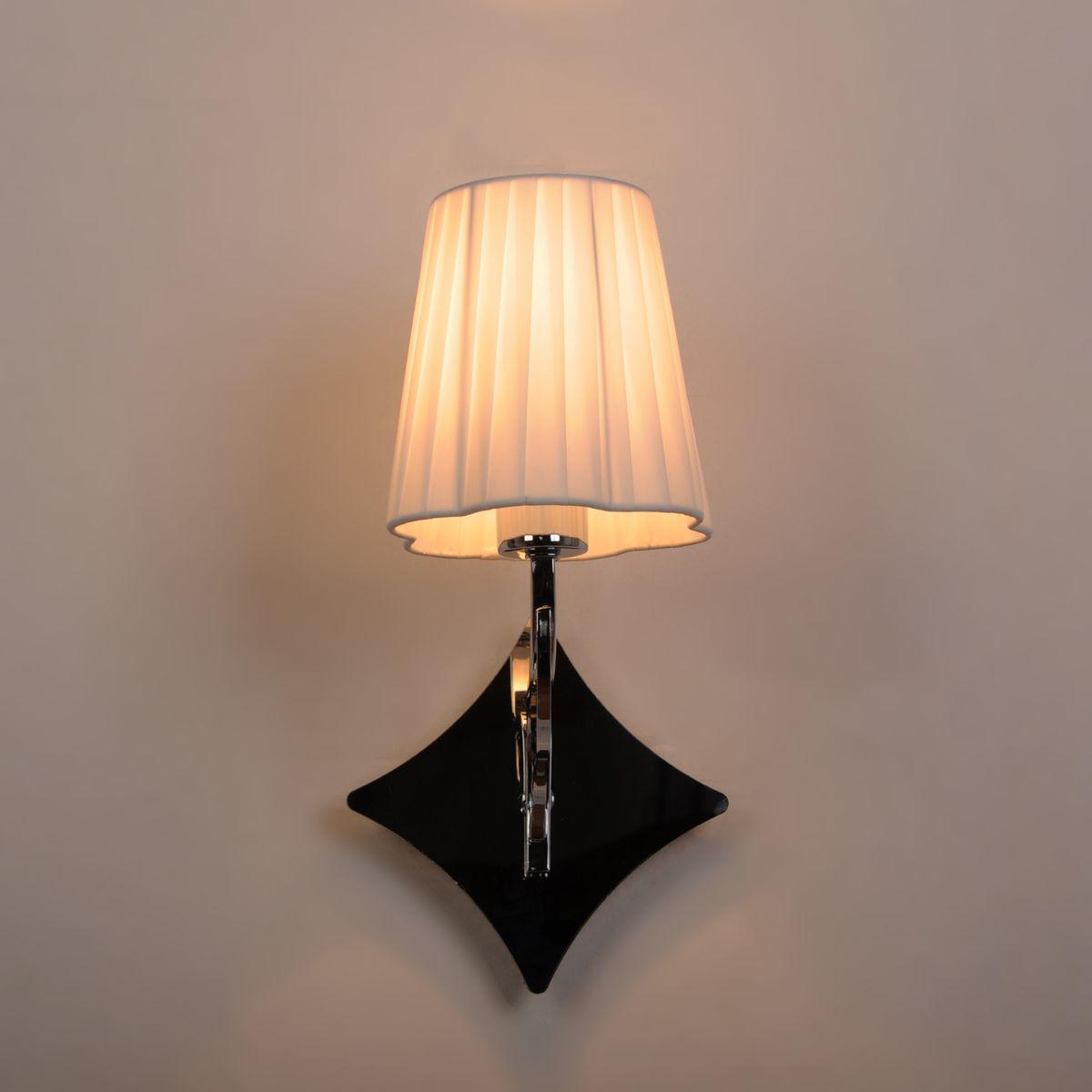 Для БРА необходима 1 лампа накаливания 40 W и цоколем E14. Габариты изделия: высота – 270 мм, диаметр – мм.