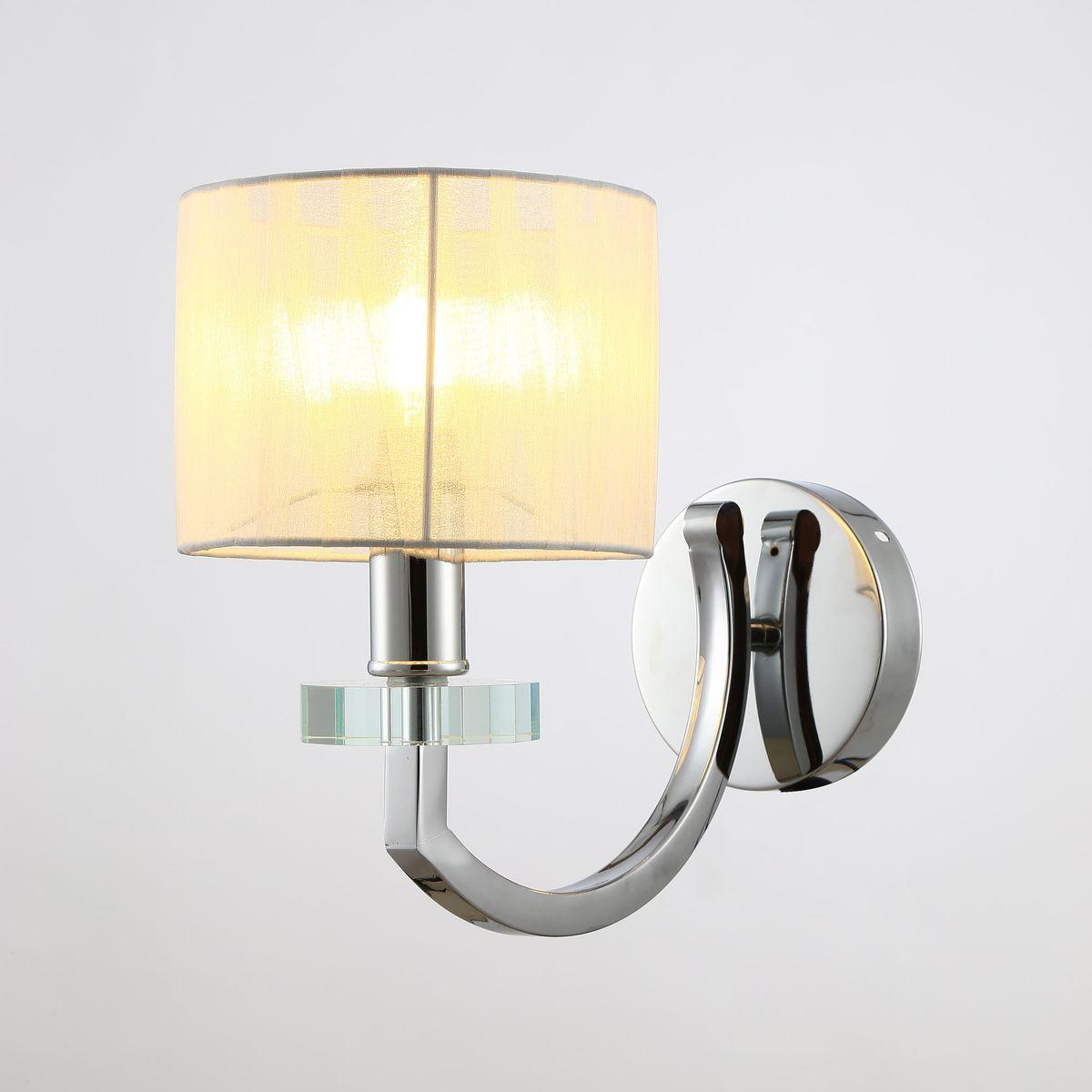 Бра Moderli Claim V2650-1W от Китайского бренда из коллекции Claim предназначен для установки в спальни в стиле модерн. Бра с металлической арматурой цвет хрома и белого цвета плафонами из ткани, формы предназначен для освещения 2,5 м2.