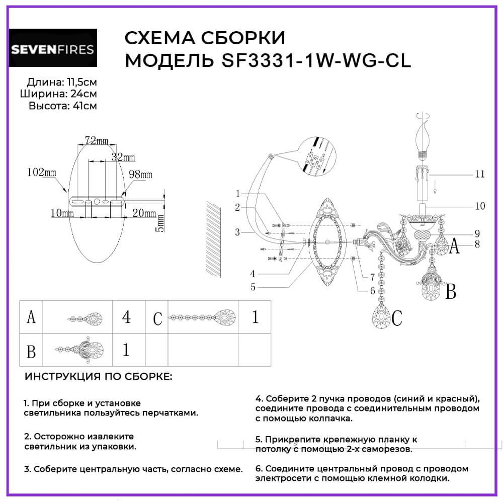 Бра Seven Fires Evetta SF3331/1W-WG-CL от Китайского бренда из коллекции Evetta предназначен для установки в классиком стиле. Бра с металлической арматурой белого цвета и плафонами из , формы предназначен для освещения 3 м2.