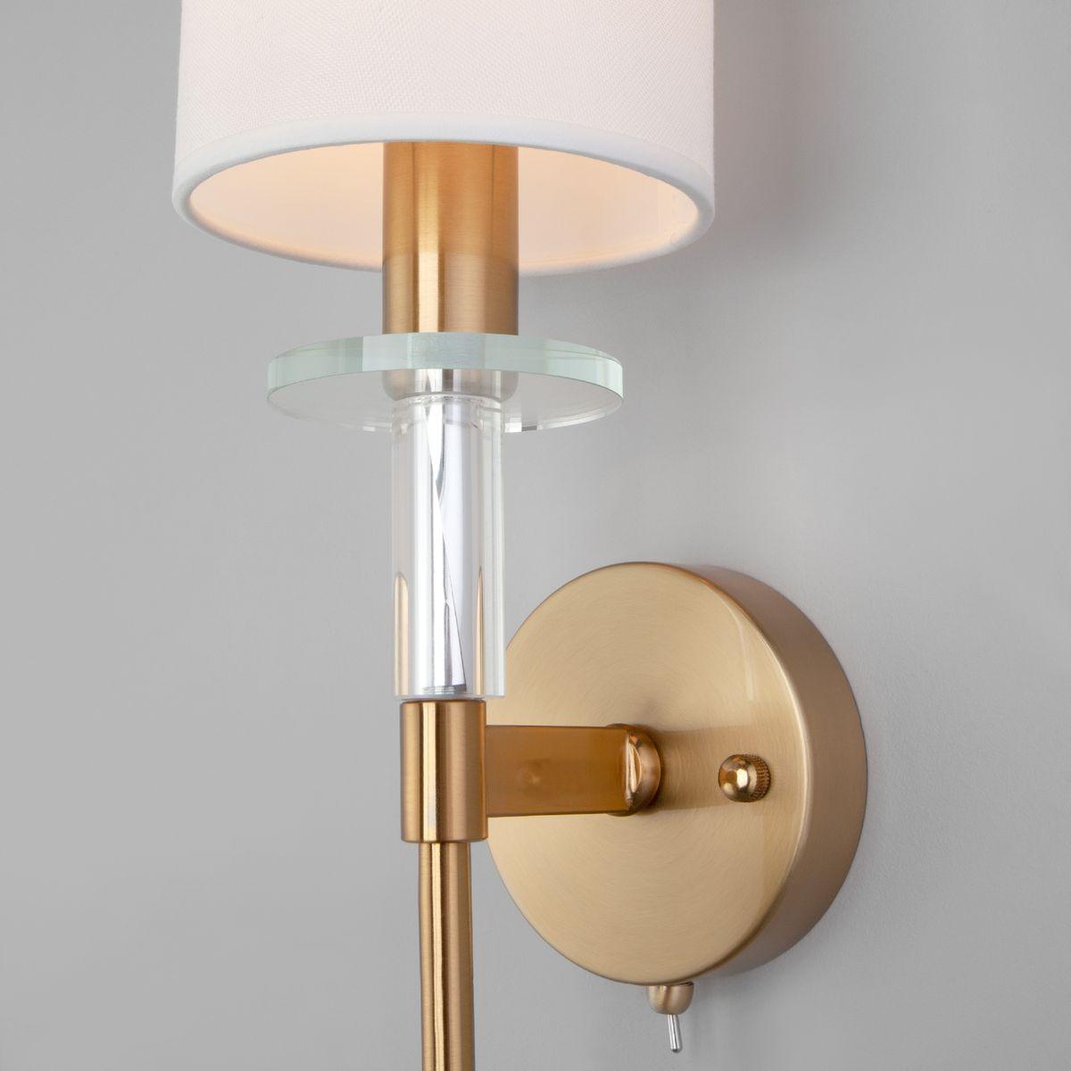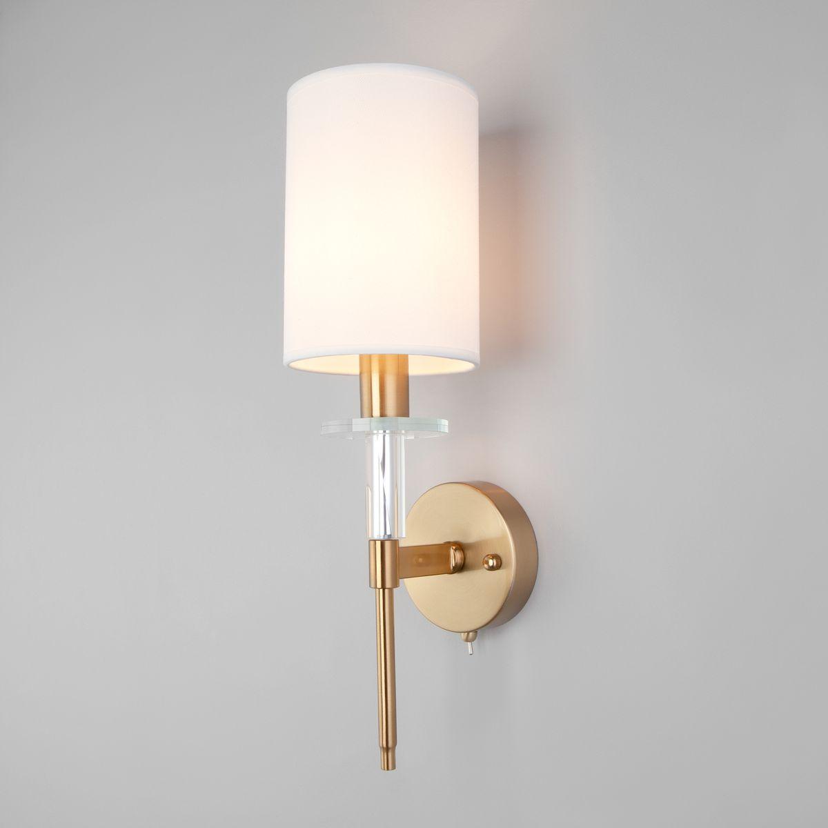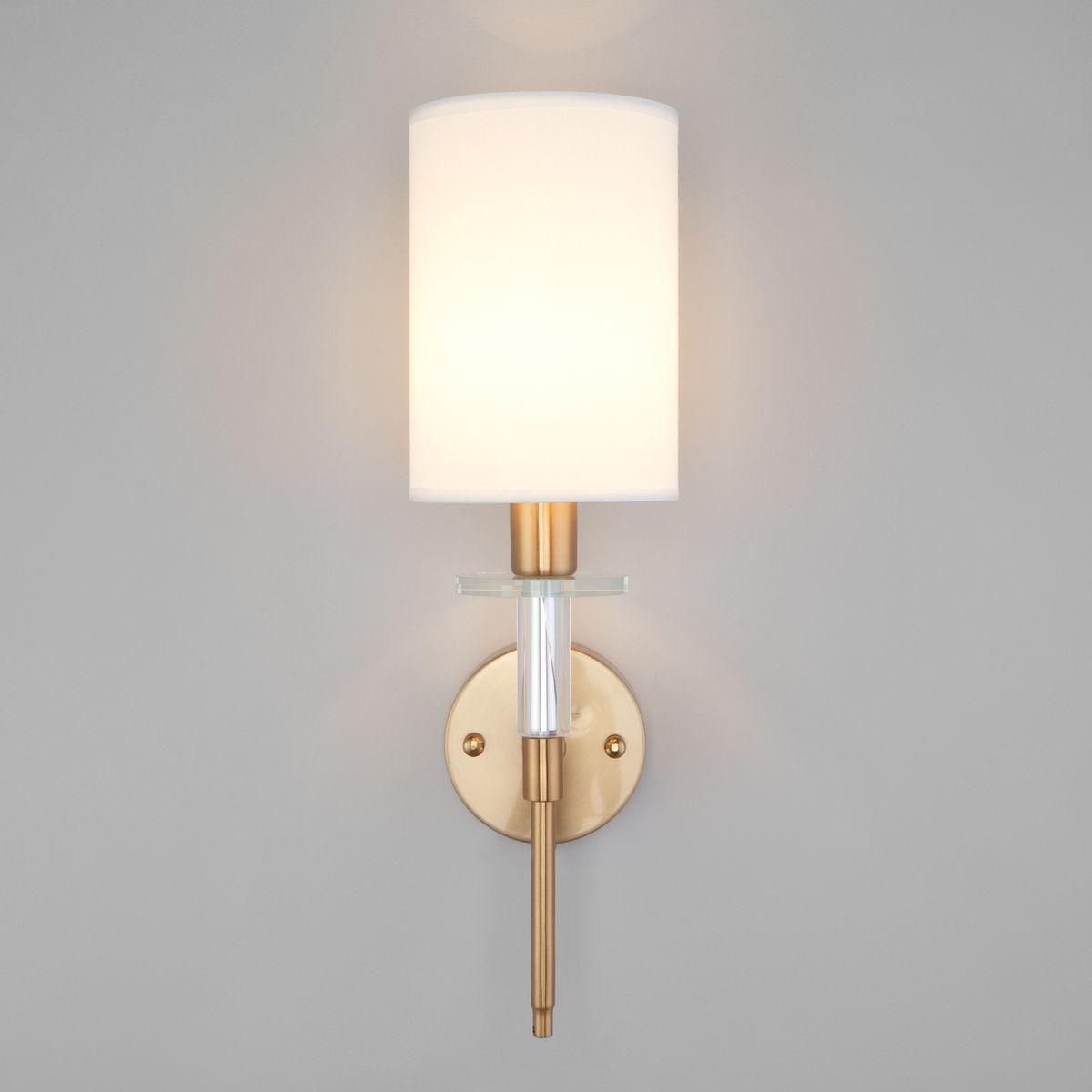 Бра Eurosvet Brielle 60132/1 латунь от Китайского бренда из коллекции Brielle предназначен для установки в спальни в стиле модерн. Бра с металлической арматурой цвета латуни и белого цвета плафонами из ткани, формы предназначен для освещения 1 м2.