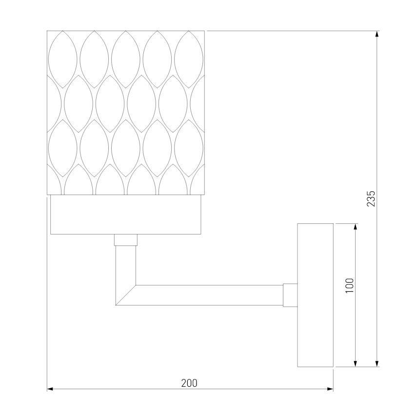 Для БРА необходима 1 лампа накаливания 40 W и цоколем E27. Габариты изделия: высота – 235 мм, диаметр – мм.
