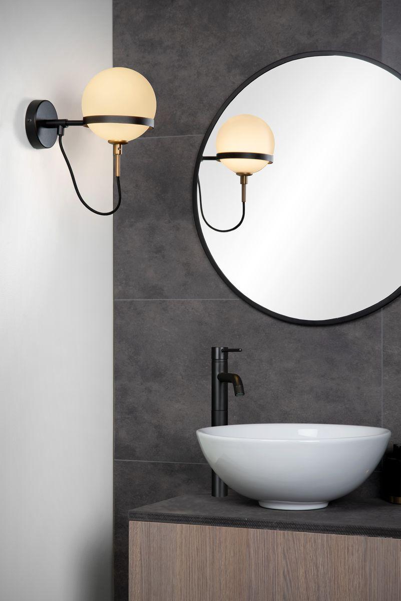 Бра Lucide Feline 30293/01/30 от Китайского бренда из коллекции Feline предназначен для установки в ванной в стиле модерн. Бра с металлической арматурой черного цвета и цвет опала плафонами из стекла, формы предназначен для освещения м2.