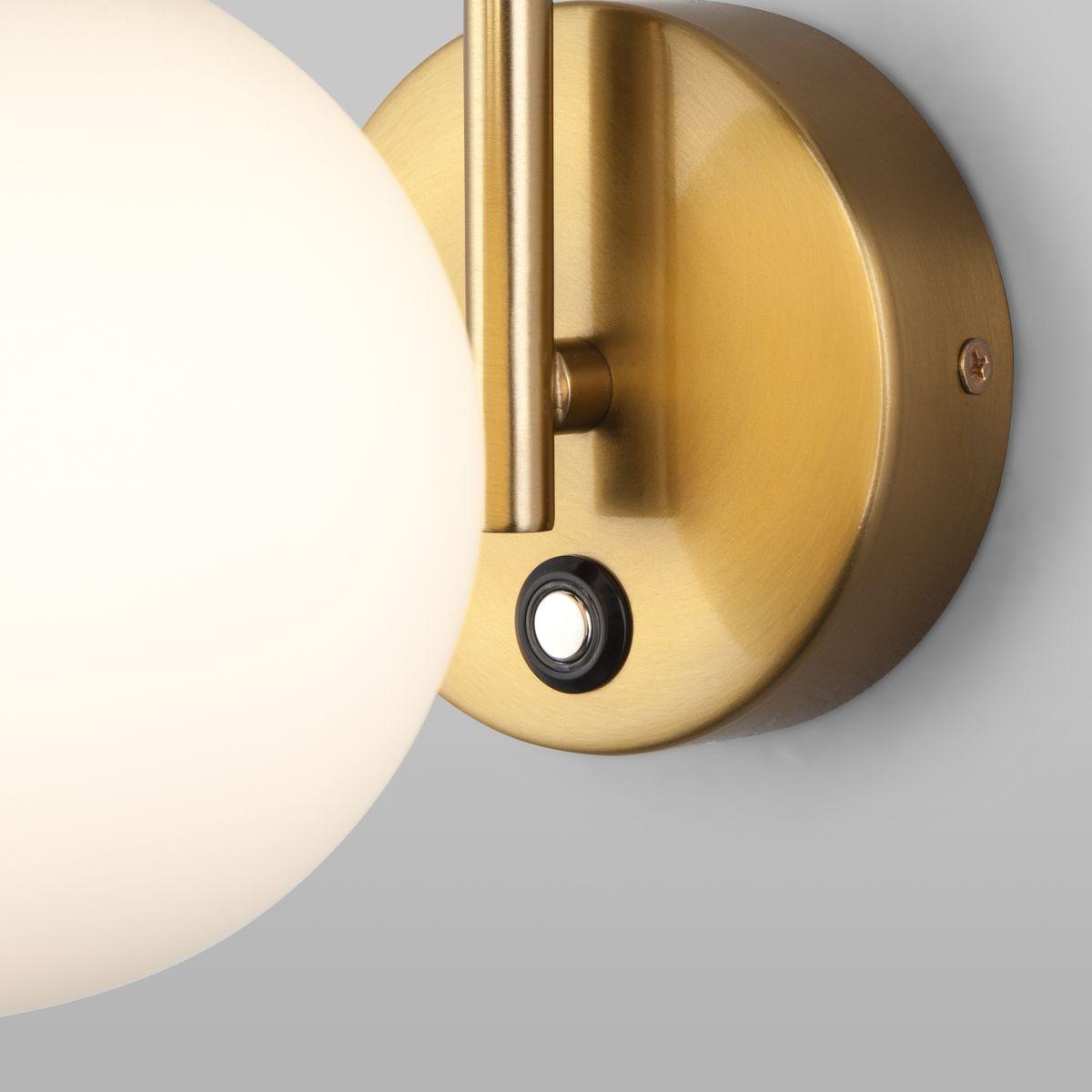 Бра Bogates Brook 359/1 латунь от бренда из коллекции Brook предназначен для установки в спальни в хай-тек стиле. Бра с металлической арматурой цвета латуни и белого цвета плафонами из стекла, формы предназначен для освещения 1 м2.